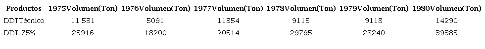 Sin embargo, y contrario a lo que podría esperarse ante este panorama, a lo largo de la década de 1970 la producción de DDT en México gozó de buena salud, especialmente la presentación de 75%. Como se puede observar en la tabla 1, 1976 fue el año de peor desempeño, mientras que en los años de 1978-1979 hay una producción estable, que luego despunta en 1980.