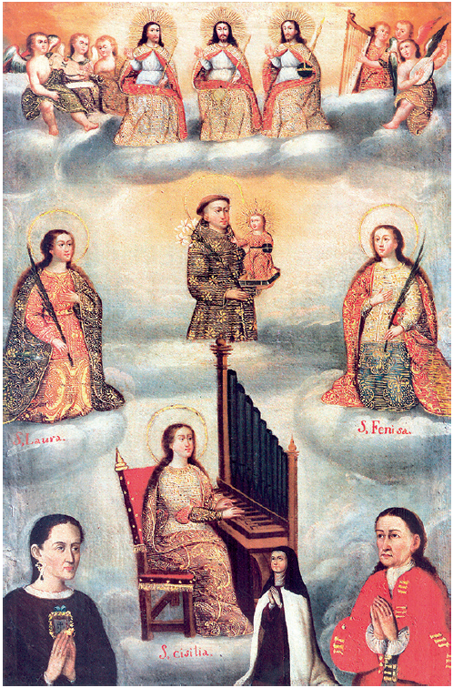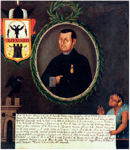 A pesar de que la Sociedad Patriótica apartó de su membresía a los indios nobles, dos de ellos, cuyos linajes habían integrado el exclusivo grupo de los Veinticuatro Electores del Cuzco, consiguieron ser electos diputados y participar del primer congreso constituyente del Perú. Ambos descendían de linajes incásicos, pero ahora uno de ellos era sacerdote y el otro abogado. Se trataba de don Domingo Choqueguanca, graduado de abogado en la universidad de Chuquisaca, quien se hizo retratar con toga y capa en un lienzo ejecutado alrededor de 1830 (véase la figura 2). El otro diputado de ancestro inca era el clérigo secular Justo Sahuaraura, canónigo de la catedral del Cuzco, cuyo retrato, en forma de medallón y con el escudo de familia en el extremo superior izquierdo, se ejecutó en 1836 (véase la figura 3).131 Así, si bien el protectorado les negó la representación, excluyendo a la elite indígena de la Sociedad Patriótica, más adelante y por elección, Choquehuanca y Sahuaraura serían diputados bajo el gobierno vitalicio de Bolívar.