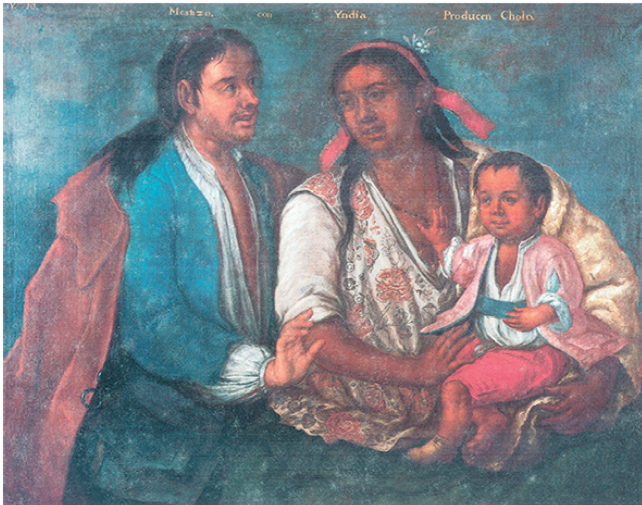 El cholo es lo que en México se denominaba en los cuadros de castas coyote, y me da la impresión de que esta casta aparece con más frecuencia en la documentación colonial peruana que en la novohispana o, incluso, es una categoría social con un contenido y una identidad que están más definidas en el caso del Perú colonial. Así, cuando Patricia Seed -siguiendo la categorización de Aguirre Beltrán- afirma que hay cinco grupos básicos en la estratificación social de México a mediados del siglo XVIII, se refiere al español, negro, indio, mestizo y mulato; un esquema que Boyer considera reduccionista150 donde, por ejemplo, no figura el coyote o cholo, cuya presencia debió haber estado también extendida en Nueva España. Aparentemente en esta propuesta no hay espacio para grupos sociales nuevos, salvo los cinco tradicionales. Lo que ocurre es que al ubicarse la casta cholo en un punto intermedio, entre el indio y el mestizo, su origen étnico podía volverse indeterminado, lo que le daba ventajas en términos de su capacidad de movilidad social (figura 6). Sólo recientemente el trabajo de Ben Vinson III ha prestado atención, para el caso de México, al segmento social de los coyotes que, al igual que los cholos, había estado tan indefinido como postergado en los estudios, siendo el enfoque del autor sobre todo a nivel de la vida cotidiana.151