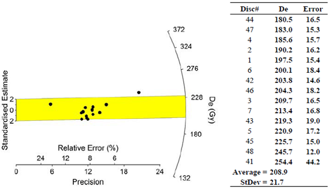 Galbraith, R.F., Roberts, R.G., Laslett, G.M., Yoshida, H., Olley, J.M., 1999, Optical dating of single and multiple grains of quartz from minimum rock shelter, northern Australia: Part I, experimental design and statistical models: Archaeometry, 41, 339-364.