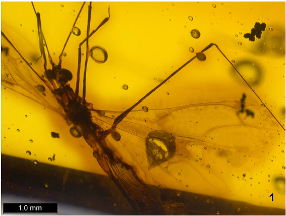 Holotype: female from Mexican amber, Chiapas, Simojovel area. Deposited in the Staatliches Museum für Naturkunde, Stuttgart, Inv.-Nr. MX-260-X. Body is considerably damaged.