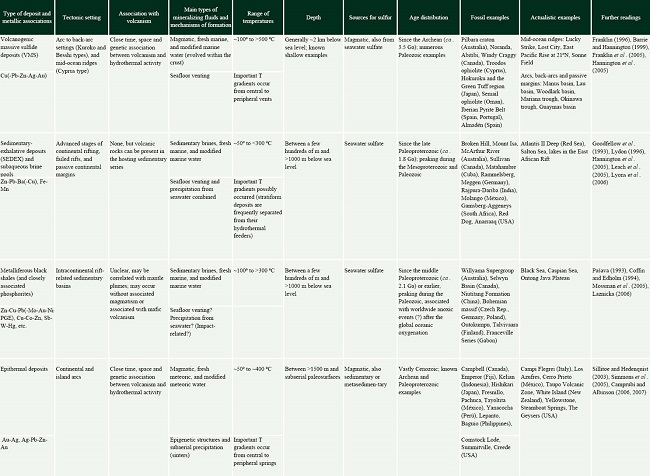 Ohmoto, H., 1996, Formation of volcanogenic massive sulfide deposits: The Kuroko perspective. Ore Geology Reviews , 10, 135-177.