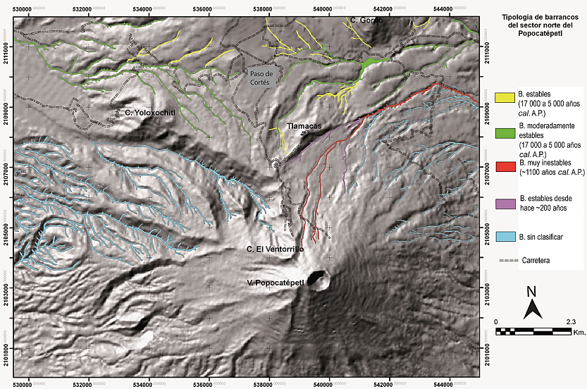 Edad, dinámica geomorfológica y tipología de barrancas en el sector norte del volcán Popocatépetl, México
