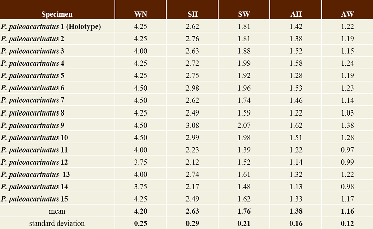Etymology. The name with the prefix “paleo” suggests that the sub-recent species is a probably ancestor of the extant species P. acarinatus from Cuatrociénegas, Coahuila.