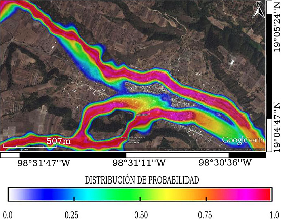 El uso de herramientas computacionales permite realizar cálculos de gran complejidad y a su vez conocer características físicas de los lahares con mayor nivel de precisión, puesto que además de mostrar la zona de afectación, se puede conocer la intensidad del fenómeno en cada punto de ella. En este estudio se presenta una primera aproximación, teniendo en cuenta que el DEM usado no tenía implementada la configuración urbanística de Santiago Xalitzintla, sin embargo la información resultante es un primer insumo de gran utilidad para el posterior análisis de la vulnerabilidad y gestión del riesgo de estos fenómenos.