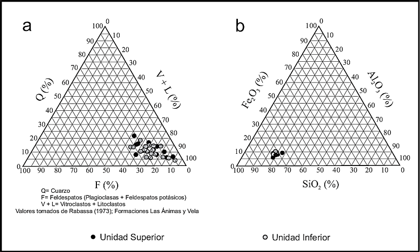 La sección estratigráfica muestreada se ubica a los 37º 35´ 37.96´´S y 58º 29´ 59.40´´O (Figura 1) y corresponde a un destape de 2.17 m de espesor, ubicado en el borde norte de la provincia geológica de Tandilia, cerca de la localidad de Ramos Otero, partido de Balcarce. Se compone de dos unidades litológicas (Figura 2) que se diferencian principalmente por los contenidos dispares de CaCO3. En el diagrama ternario de la Figura 3a se indican los componentes minerales dominantes de la fracción arena muy fina de ambas unidades. La unidad superior posee 1.20 m de espesor y está constituida por loess primario modificado por el ciclo pedogenético actual. El perfil de suelo se compone de un horizonte A color negro en húmedo, de textura franco arcillo limosa y estructura granular; un horizonte Bt, de textura franco arcillosa y estructura prismática; un horizonte de transición (BC) y un horizonte C sin signos de pedogénesis. La unidad inferior se destaca por su elevado contenido de carbonatos, dispersos en la masa o bien conformando lentes acintados; son materiales loessicos, redepositados por acción fluvial; desde el punto de vista edafológico conforman horizontes 2Ckkm y 2Ckm. Las unidades litológicas descritas se corresponden respectivamente con las formaciones Las Ánimas y Vela del esquema de Rabassa (1973). Una descripción sedimentológica, estratigráfica y pedológica de mayor detalle de la sección estratigráfica aquí tratada puede consultarse en Gómez Samus (2016) y Gómez Samus et al. (2016a, b, 2017).