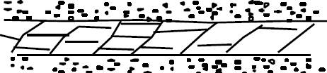 4.2.3.5. Laminated mudstone and desiccation cracks (F2). Facies associations F2 are characterized by facies Fm and Fl (Figure 5). It consists of alternating massive to laminated, brown and red siltstone, and dark brown claystone with desiccation cracks. The beds are a few millimeters to five centimeters thick. Mud facies tend to be discontinuous in the surface and commonly grade down into muddy-sand and sandy-gravel facies. The fine grain size and generally good sorting indicate that this facies resulted primarily from suspension deposition in standing or slow-moving waters, probably in an overbank and possibly in a backwater swamp setting such as described by Miall (1977, 1978). Architectural elements include Overbank Fine (FF).