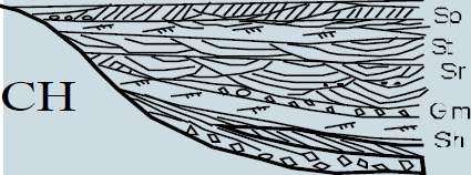 Massive sandy beds of facies Sm and Ss might be formed in response to sediment gravity flows (McCabe, 1977; Jones and Rust, 1983) and interpreted as result of transport and deposition by short-lived mass flows. Sediment gravity-flow deposits indicate non-cohesive gravity-flow deposition. Their presence within the channel fills probably records channel bank instability and slumping. Sediment Gravity-Flow deposits (SG) is the architectural element of the S2.