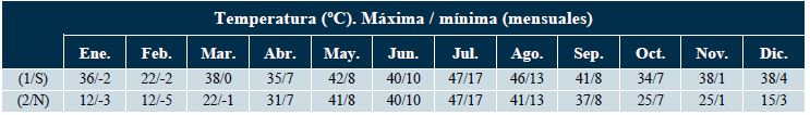 Las temperaturas máximas anuales en las orientaciones sur y norte, se tienen en los meses de junio y julio alcanzando los mismos valores, siendo enero el mes dónde la diferencia de Tª entre ambos sensores es mayor (Tabla 1). Las Tª mínimas, tienen idénticos valores en los meses desde abril a diciembre, siendo febrero donde la diferencia de temperatura es mayor entre ambas orientaciones. Los datos de la Tabla 1 demuestran que el ángulo de incidencia de la radiación solar en la cara sur es inferior durante el solsticio de verano que durante el equinoccio de otoño debido a la altura del sol sobre el horizonte.