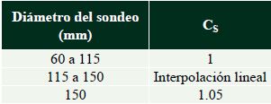 Donde N es el valor del ensayo SPT, adoptándose un valor máximo de 50, y ƒ se encuentra tabulado en la Norma, incluyéndose los valores en la Tabla 3.