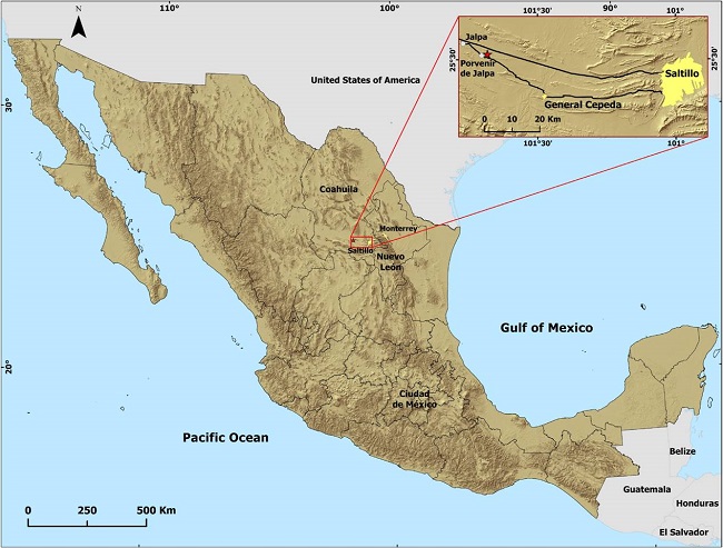 Locality - LA 14 near Las Águilas, Porvenir de Jalpa, Coahuila, northeast México (Figure 1).