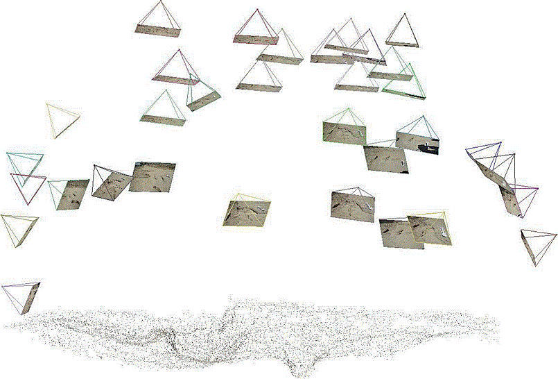 Al emplear el algoritmo CVMS (Clustering Views for Multi-view Stereo) para escalar los puntos, el programa formó conjuntos (clusters) y obtuvo la posición relativa de la cámara en cada fotografía, lo que generó una “nube de puntos densa”. Dependiendo de la complejidad del modelo, esta “nube” puede contener varios millones de vértices (puntos individuales).