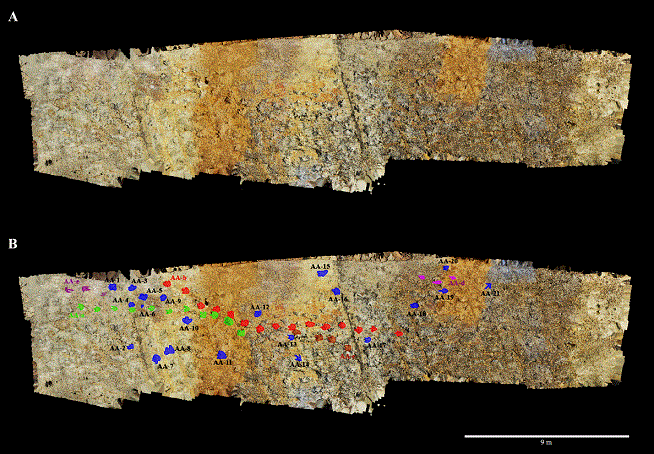 Está ubicada a 2 km al noroeste de la Zona Paleontológica de Rincón Colorado (ZPRC) y está representada por un afloramiento de arenisca de 12.5 m de longitud por 3 m (37.5 m2) de anchura que preserva marcadas rizaduras de oleaje junto con el rastro individual compuesto por seis huellas. Cada icnita se procesó individualmente y el modelo conjunto del yacimiento, para el que se emplearon 214 tomas, resultó muy satisfactorio (Figura 13).