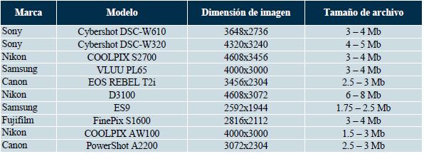 No es necesario el uso de cámaras profesionales. En el presente estudio se emplearon cámaras de calidad comercial con resoluciones entre 5 y 10 Mp (Tabla 1). Para el procesamiento se prefiere la cantidad de fotografías sobre su calidad (alta resolución) (Falkingham, 2012). La fotogrametría es un método que no registra el tamaño real de los objetos modelados, por lo que resulta imperativo el empleo de una escala fija para cada huella o sector a registrar (Breithaupt et al., 2004).