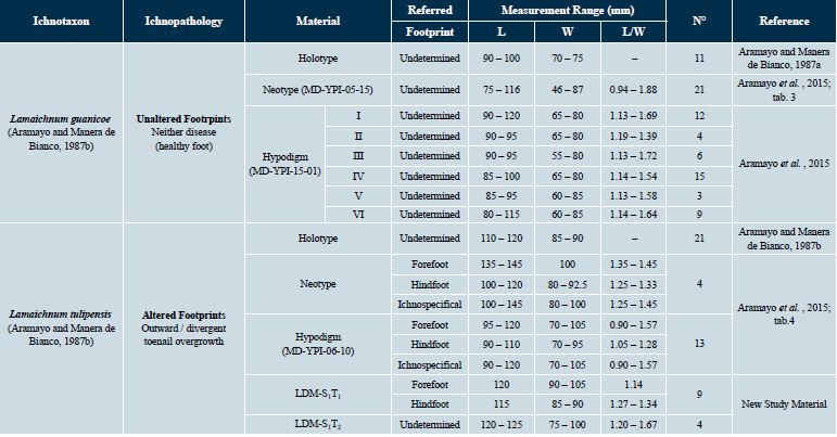 Ichnotaxonomic remarks. Traditionally, two llamoid ichnospecies are recognized for the Late Pleistocene of South America: Lamaichnum guanicoe and Lamaichnum tulipensis (= Megalamaichnum tulipensis) (Aramayo et al., 2015).