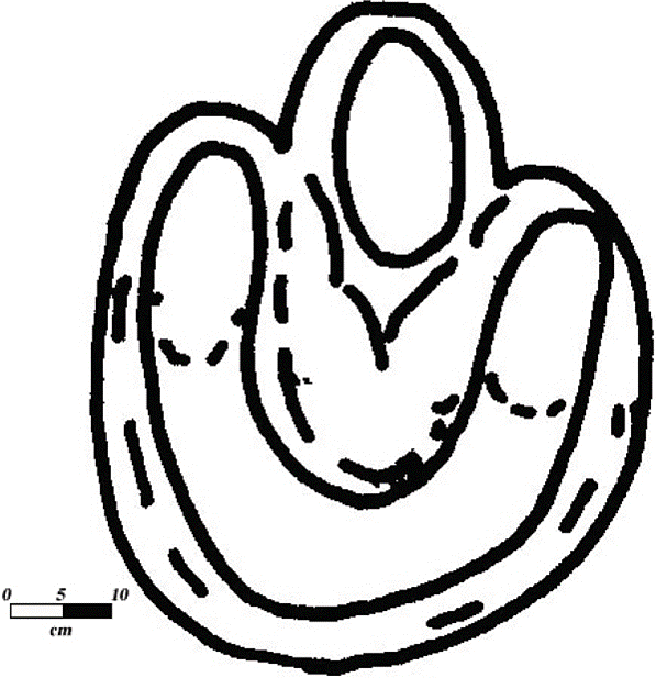 Sólo dos icnitas fueron reconocidas en este yacimiento y se encuentran en la misma plataforma rocosa que las de Picunichnus. El largo de paso es de 70 cm (Figura 43). La huella tiene 18 cm de largo y 13 cm de ancho. Son huellas no muy bien conservadas, con el dedo III más desarrollado que los laterales; el dedo II apenas supera en largo al dedo IV. La palma es subredondeada.