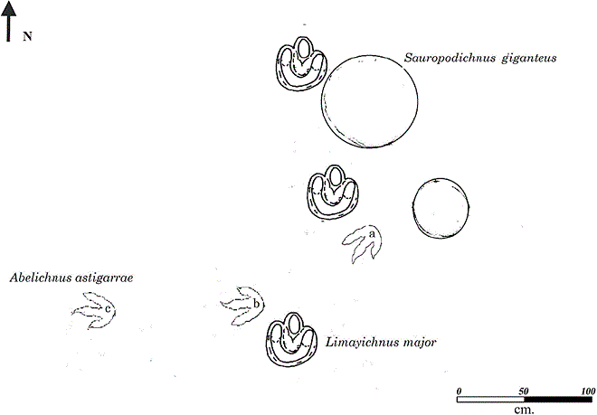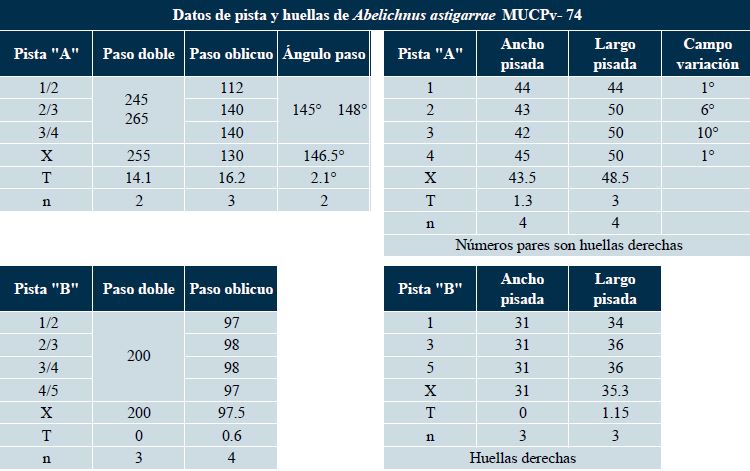 Abelichnus astigarrae. Plastotipo, MUCPv-74; plastohipodigma, MUCPv-148. Se identificaron dos pistas con nueve huellas en total.