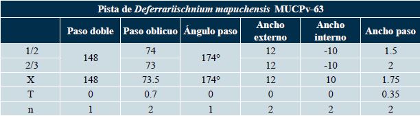 Picunichnus benedettoi. Holotipo, MUCPv-72. Se identificó una huella (Figura 8; Tabla 11).