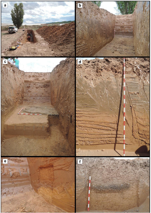 Las zanjas, de aproximadamente 4 × 8 m de extensión y 3 m de profundidad máxima se realizaron con una pala excavadora, monitorizándose en todo momento el sedimento extraído y la posible presencia de restos arqueológicos.