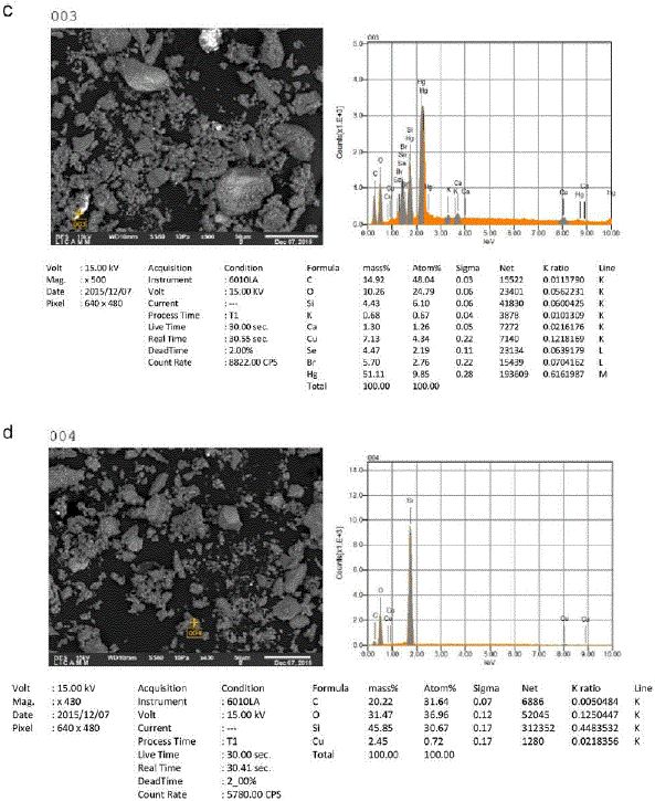 The SEM examination revealed silicon/aluminum (Si/Al)-rich particles and C, Ca, Na, Mg, K, and P in all adobe bricks. The presences of pollen, dry grass and vegetal fibers are common in almost all the studied adobes, excepting those that belong to the Hacienda La Purisima. As for the metals, it can be observed that most of the adobes of the haciendas studied have Fe, Cu, Hg, Sn, Zn, S, and Se. Hacienda San Clemente is the only one that, in addition to presenting the aforementioned metals, presents Pb (Figures 6, 7 and 8).