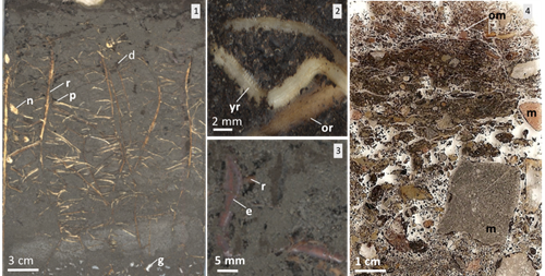 Morphological analysis of images from Soilinsight® and from thin sections resulted in qualitative microstructural data. Higher magnification views and SEM-EDS micro-analyses have also been used in such soils, to complete knowledge of the parent materials composition, their biodegradation or weathering, as well as their mode of association (Watteau et al., 2017). Moreover, observation of roots and biofeatures (faecal pellets, casts) on thin constructed Technosol sections has revealed biological activity. Further, micromapping of thin sections as proposed by Gutiérrez-Castorena et al. (2016) should advantageously complete these data by determining microbial activity.