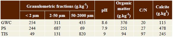 Soil samples were collected from the experimental station belonging to the French Scientific Interest Group-Industrial Wasteland (Homécourt, northeast France, http://gisfi.univ-lorraine.fr), where a process of soil construction has been performed on a 1 ha plot. The climate is continental with a mean rainfall of 760 mm y−1and a mean temperature of 10 °C. The pedological engineering process used for soil construction has been described bySéré et al. (2008). The constructed soil was a Spolic Garbic Hydric Technosol (Calcaric) (IUSS Working Group WRB, 2006; Séré et al., 2010). It was made of three technogenic parent materials: Green-Waste Compost (GWC), Paper-mill Sludge (PS), and thermally Treated Industrial Soil (TIS), which were stacked into layers forming three initially distinct horizons. The main characteristics of the parent materials are presented in Table 1. From bottom to top there were: 45 cm of PS, 125 cm of TIS plus PS mixture (1:1 volumetric ratio), and 15 cm of GWC.
