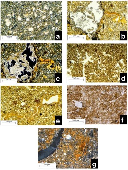 This relationship has been found in many Holocene loess soils in East and Central Europe and in the Central Lowlands and Great Plains of the USA (Bronger, 1976: 35-106; Bronger, 1991, 2003b). Even where illuvation argillans1(Brewer, 1964; Bullock et al., 1985) as unequivocal signs of clay illuviation (Figures 1b and 1c) are transformed by changing environmental conditions in buried or relict paleosols, or are aged (Figures 1e and 1g) because of post-pedogenetic or diagenetic processes (which are still poorely understood), they still remain visible as a stable element of soil microfabric. They are even found in the excrements of earthworms (e.g. Zachariae, 1964; photo 3 in Bronger, 1976; photo IA in Catt, 1989) or in “Fließerde” (geliflucted soil) in a buried Mid-Pleistocene Udalf (figures 2A and 2B in Bronger, 1970; photos 1 B-D in Catt, 1989). To summarize, the distinction of primary and secondary calcites and the evidence of clay illuviation enables the recognition of typical loess and the recognition of different genetic soil horizons, such as CB (still with primary calcites), BC, Ah, Bw and Bt horizons (Figure 2).