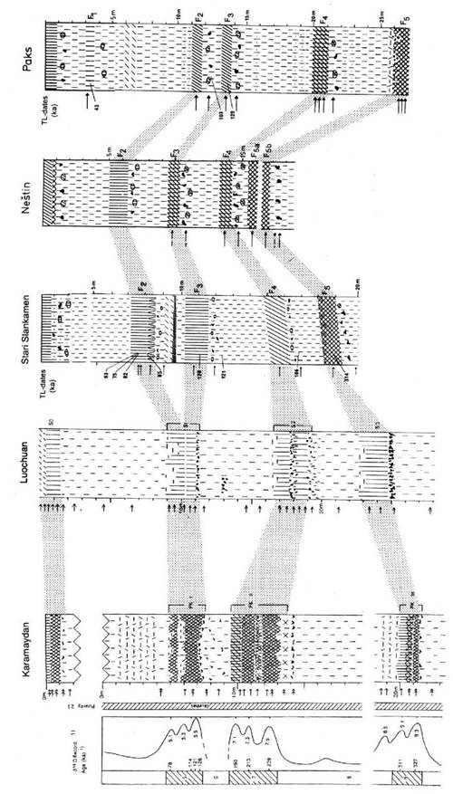 The second control point is the F3 paleosol in the LPS of the Carpatian Basin (figure 2 in Bronger, 2003a, with luminescence dates of A.K. Singhvi) which represents the Riss/Würm interglacial or stage 5.5 in the oxygen isotope record, according to thermoluminescence dates (Wintle and Packman, 1988; Singhvi et al., 1989; Frechenet al., 1997).
