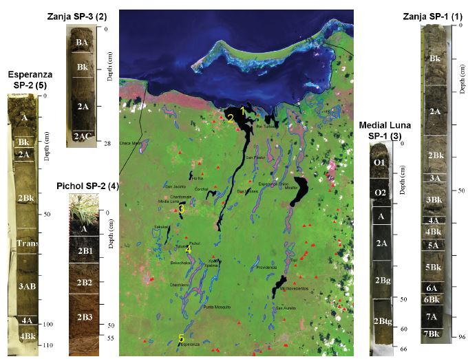 It is in this context of complex interplay of human- and natural-induced environmental impacts that this study considers the use and abandonment of wetland farming in the Yalahau region. Of particular interest is how changing flood patterns in the wetlands relate to the Early Classic abandonment of the Yalahau region. The aim of this work is to use the El Edén soil sequence, and the model used to explain it (Hodell et al., 2007: Figure 12; Solleiro-Rebolledo et al., 2011; see Figure 4), as the basis for interpreting the timing and nature of changing hydrologic conditions at other wetlands in the region. This in turn will provide a context for understanding Maya use of wetlands and cycles of settlement and abandonment of the region. Five wetland soil-sediment profiles from across the region are studied - with analysis focused on soil micromorphology.