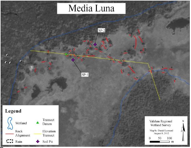 In the context of Maya settlement history and agricultural exploitation of wetlands, it is suggested, as a most likely scenario, that the absence of surface flooding in certain wetlands during the Preclassic period was advantageous to the Yalahau Maya. In the Preclassic period, many wetlands such as Media Luna and Pichol were more like broad, soil-filled depressions that were excellent for farming during the dry season. It is suggested that the Maya constructed the majority of rock alignments during this time, primarily in swampy but unflooded wetlands, to function as low-slope terraces to trap soil (as earlier hypothesized), or to protect young crops from rapid surface runoff into the depressions, near the end of the rainy season (for more on potential cultivation methods, see Fedick et al. 2000:145). These particular wetlands generally did not flood in the Late Preclassic because the water table was perhaps ~1m lower than it is today (Fedick et al., 2000:143). Swampy, but unflooded, conditions prevailed as evidenced by the lower units observed in the cores.