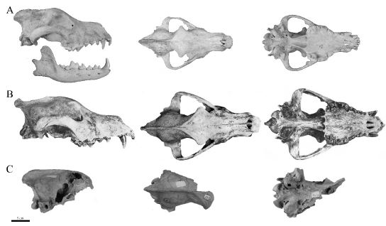 Cabe mencionar que el material mexicano en el que se basó Kurtén (1984) es el más completo y mejor preservado hasta la fecha. El resto del material asignado aC. dirusen México consiste en elementos dentales y postcraneales aislados, fragmentados y muy desgastados.