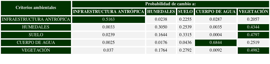 El análisis de tendencia de cambio resultante de este diagnóstico muestra el impacto negativo de los sistemas de control de agua y el potencial de identificación de espacios inundables a través de métodos de análisis multi-temporal como Markov en el que los sistemas ambientales presentaron una tendencia de cambio a infraestructura antrópica en el periodo analizado entre 1986 y 2016. Por lo tanto, el presente trabajo es una contribución al análisis del proceso de inundación en planicies bajas mediante sistemas de información geográfica y puede ser integrado en simulaciones de eventos de inundación.