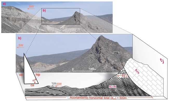 Palabras clave: Desplazamiento falla inversaDesplazamiento falla inversa,pliegues chevronpliegues chevron,falla de San Marcosfalla de San Marcos,Capas Cerro la BrujaCapas Cerro la Bruja.