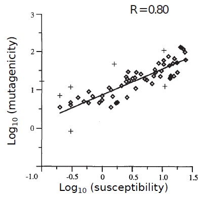 Magnetic susceptibility of respirable pollutant particles has been shown to have a strong correlation to heavy metals such as Pb, Zn, Cd, and As and, furthermore, to their mutagenic potency, i.e., their ability to cause mutations in the genome (Morris et al., 1995; Ďurža, 1999; Petrovský et al., 2001; Shu et al., 2001; Morales et al. 2016). Morris et al. (1995) first indicated that there is a direct association between magnetic susceptibility and mutagenic potency of inhalable PM (content of PAH). They investigated 62 air filter extracts and found a high correlation between mutagenicity and magnetic susceptibility (Figure 10). The linear regression shows a correlation factor of R = 0.80. This indicates that χ may be used as an indicator for mutagenetic activity of respirable PM.