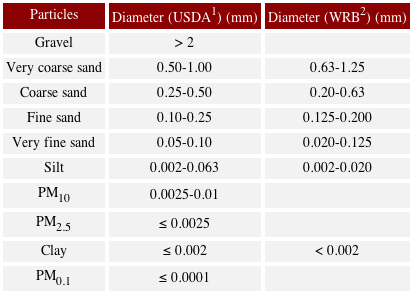 Soil is composed of minerals and organic particles that are arranged in a matrix with about 50% pore space occupied by water and air (Foth, 1990; Table 1). Soil particles are grouped into different soil, separated according to their particle size and type (Table 1). Stones and gravel, considered part of the coarse fraction of soil, come from the weathering of rocks. They mainly contain minerals of geological origin with small levels of potentially toxic elements. Minerals particles with diameters <2 mm, smaller than stones and gravels, are considered the fine earth fraction and include sand-, silt- and clay-size particles (Brady and Weil, 2002). Silty sand is a soil mixture separates are often dominated by quartz, but they can also contain significant amounts of feldspar and mica (Foth, 1990). Coarse and fine sands are a mixture of natural particles, which are derived from rock weathering, and of anthropogenic particles. Since sand particles can be carried by the wind, it is necessary to identify their origin. Clays are soil separated ≤2 μm. Due to their very large specific surface they can absorb large quantities of water and other substances than other soil separates (Brady and Weil, 2002). Iron plays a great role in the processes of soil development and affects the physical properties of the soils such as color, structure, and fabric (Maher, 1986). Iron oxides can act as sources or sinks of plant nutrients and pollutants (Maher, 1986). They prevail within soils as discrete fine particles, clusters, or fine-grained material coating other grain or void surfaces (Maher, 1986).