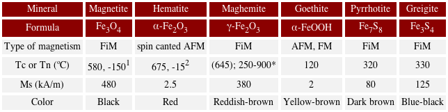 Ferromagnetic (s.l.) minerals can easily be detected in natural samples through mostly non-destructive environmental magnetic measurements. These kinds of minerals can have a variety of natural and anthropogenic sources (Cornell and Schwertmann, 2003). A summary of the most important ferromagnetic minerals and their characteristics can be found in Table 2.