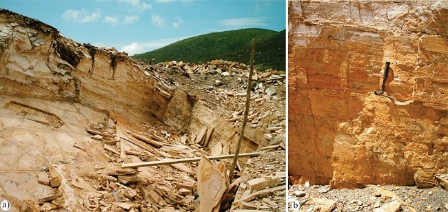 Besides, the local geological framework of San José de Gracia quarry is somewhat complex. In the south, Cambrian-Devonian shales and phyllites belonging to the metamorphic complex of the Acatlán Complex are the oldest rocks in the region (Ortega-Gutiérrez, 1978). Above these Paleozoic strata, there are terrigenous red layers and calcareous lenses from the Upper Jurassic-Early Cretaceous (Neocomian-Aptian). Near the town of Tepexi de Rodríguez, a few kilometers south of San José de Gracia, Pantoja Alor (1992) described the Tlayúa Formation as an incomplete sequence, which is recognized as a sequence of at least 300 meters thick composed of marine strata of Aptian-Cenomanian lower age. The low topographic parts near San José de Gracia and Tepexi de Rodríguez show continental Tertiary clastic sediments belonging to different units; among these, the Paleocene-Eocene conglomerates of the Balsas Group (Fries, 1960) lie on the eroded surface of the Tlayúa Formation; above, a Eocene-Oligocene sequence of fluvial, lacustrine and alluvial deposits of the Pie de Vaca Formations as well as a Pleistocene sequence of lacustrine travertines belonging to the Agua de Luna Formation are present (Pantoja-Alor, 1992; Beraldi-Campesi, 2003; Applegate et al., 2006; among others).