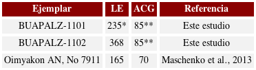 Lamentablemente los ejemplares de Tlaxcala no fueron asociados con material más diagnóstico, por ejemplo molares o defensas, para poder calcular la edad biológica del ejemplar, sin embargo los ejemplares de San Mateo Huexoyucán son más grandes en medidas que los ejemplares de crías de Mammuthus reportados por Maschenko y colaboradores (Maschenko et al., 2013), quienes proponen una edad biológica de 14-16 meses de vida al ejemplar de Oimyakon (Tabla 3), lo que sugiere que los ejemplares estudiados son jóvenes.