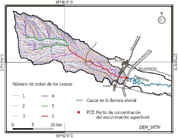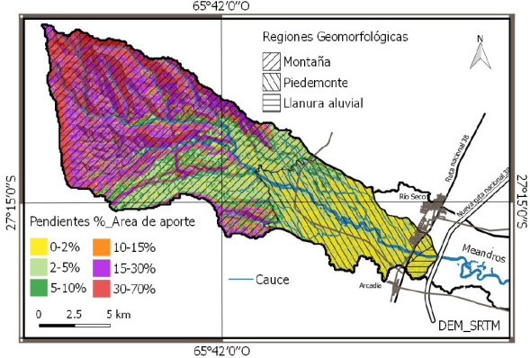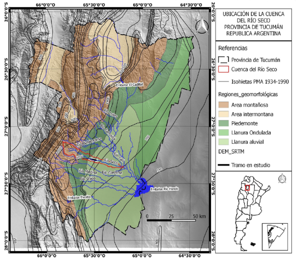 Con el propósito de contribuir a un mayor conocimiento sobre el diseño y evolución del sistema fluvial en la región, en este estudio se analizarán previamente las características generales de la cuenca del río Seco, ubicada sobre la ladera oriental de la sierra del Aconquija, piedemonte y llanura aluvial. Posteriormente, se realizará el estudio del área de aporte efectiva al sistema de meandros, que, en el caso del río Seco, se circunscribe a una subcuenca ubicada en la cuenca media-alta del rio homónimo.