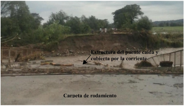 En la Figura 6 se observa que la cuenca media-alta, aguas arriba del tramo en estudio, se encuentra entre las isohietas de 1200 a 2000 mm anuales. Los daños provocados como consecuencia de la severidad de los caudales son testimonios de la intensidad de las precipitaciones. En el mes de febrero de 2016 las crecidas destruyeron el puente sobre el río Seco, ubicado en el piedemonte (Figura 7). Este fenómeno climático afectó también a numerosas poblaciones de la provincia, causando el desborde de los ríos y la interrupción del servicio eléctrico y de agua potable. Similares eventos se presentaron en los meses de enero y febrero de los años 2014 y 2015. En las observaciones de campo, luego de uno de los eventos de crecida, se detectó la pérdida de una ha de suelo cultivado con caña de azúcar, superando ampliamente al proceso erosivo que podría producirse en varios años de dinámica hídrica normal. Castañeda y Barros (1994) precisaron que, entre 1956 y 1991, en la mayor parte del territorio argentino al norte de 40° latitud Sur, el incremento en las precipitaciones medias anuales fue mayor al 10%.