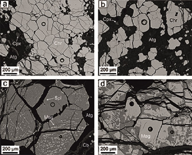 Chromitites chiefly consist of Cr- and Al-rich chromite (generally, >80 vol.% of chromite;Arai and Miura, 2016), which represent the main reservoir of chromium in nature. Chromitite orebodies large enough for mining are spatially associated with mafic and ultramafic rocks and their serpentinized equivalents, and are generally found in: i) continental layered intrusions forming stratiform chromitites, and ii) different parts of the oceanic ophiolitic sequences as a “podiform” or “stratiform” chromitites (e.g.,Leblanc and Nicolas, 1992;Stowe, 1994;González-Jiménezet al., 2014 and references therein). Besides their economic importance, chromitites are also scientifically relevant because the composition and microstructural features of chromite, and the mineralogy of their inclusions (i.e., ultra-high pressure, super-reducing and continental crust minerals) provide valuable information about the nature, evolution and geodynamics of the Earth’s lithosphere (e.g.,Dick and Bullen, 1984;Arai, 1992;Barnes and Roeder, 2001;Kamenetskyet al. 2001;Rollinson, 2008;González-Jiménezet al., 2014;Arai and Miura, 2016;Griffinet al., 2016;Xionget al. 2017;Farré-de-Pabloet al., 2019;Pujol-Solàet al., 2018;Tanneret al., 2019).