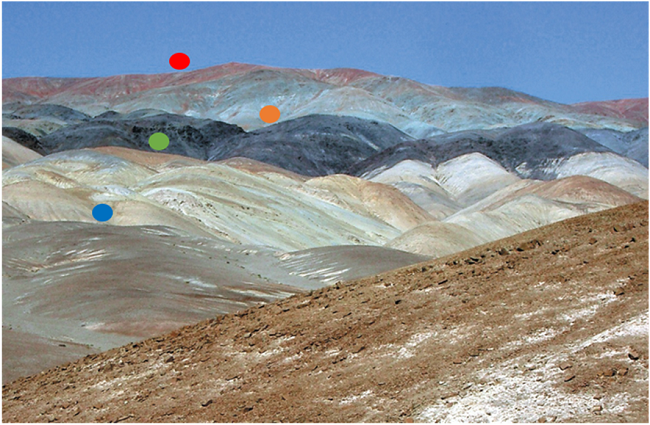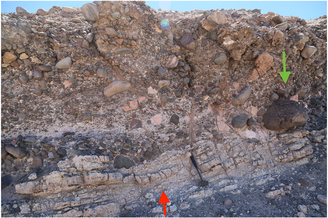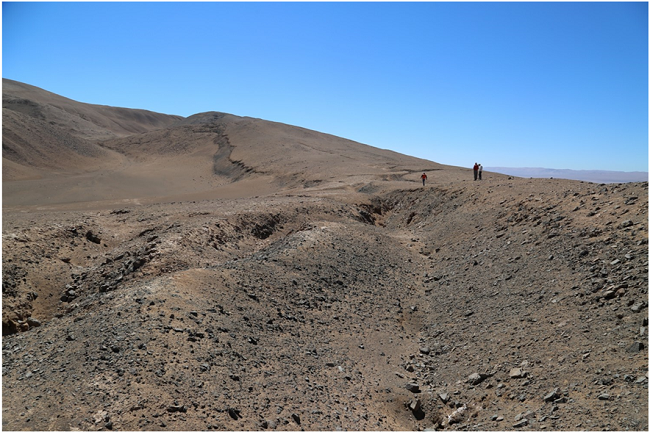 Considerando las conclusiones descritas y observaciones propias del registro estratigráfico, en este trabajo se considera la hipótesis de que, durante el Cenozoico, el Norte de Chile ha mantenido condiciones climáticas similares a las actuales, con ciclos continuos de hiperaridez/aridez intercalados con otros de períodos más húmedos. Estos ciclos incluirían microciclos (miles de años) que incluso pueden comprobarse por sus efectos sobre antiguas poblaciones humanas. Algunos de los argumentos que manejamos es la presencia, en el registro estratigráfico, de numerosos paleolagos y sistemas fluviales presentes desde el límite Cretácico Paleoceno hasta hoy en el Desierto de Atacama (Figura 14), algunos de los cuales incluyen cambios de facies desde lagos a salares (Figura 15). También se reconocen: i) paleosistemas fluviales de alta energía; ii) discordancias producto del arrasamiento de sistemas volcánicos del Paleógeno por avenidas torrenciales; iii) suelos “activos” por la acción combinada de agua y sales; iv) sistemas de fallas que transportaron agua y salmueras; y v) conservación de algunos rasgos geomorfológicos y de rocas por decenas de millones de años como calderas, cráteres, vidrios volcánicos y campos geotermales del Paleógeno.