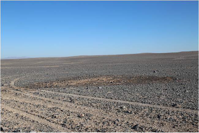 En el caso del Desierto de Atacama, este tipo de suelos se distribuyen prácticamente en toda su extensión independiente de la topografía, toda vez que se forman sobre la totalidad del relieve. incluyendo cumbres y laderas de los cerros (Figura 17). Se presenta de varias maneras, Aflora como un horizonte superficial homogéneo, ocasionalmente con grietas de desecación y pequeñas cuencas donde se forman costras de cloruro de sodio (Figura 18). En otros casos corresponde a un horizonte subsuperficial, duro y compacto, cubierto solo por centímetros de sedimentos aluviales (Figura 19). En estos casos, el gypsisol suele presentar, en su base horizontes de sales como tenardita y mirabilita con espesores de hasta 30 cm, distribución lateral de cientos de m2 y estructuras de tepee (Figura 20). En un solo caso, Cerros de la Joya (21°51’S - 69°23’W), con características idénticas, estos horizontes son exclusivamente de ulexita pura.