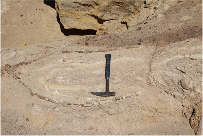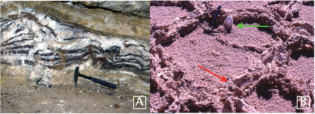 Además de las estructuras descritas, existen otras que no se muestran en este trabajo. Por nombrar algunas, están todas aquellas que se producen en salares como grietas de desecamiento rellenas por sales, las burbujas conocidas como salt-cups o los plegamientos y destrucción de rocas por la acción de sales (Figura 34). También deben mencionarse las estructuras diapíricas de las evaporitas marinas jurásicas.