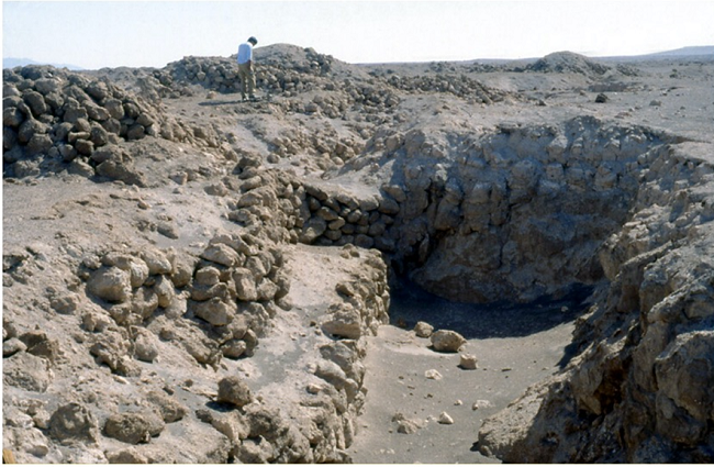 En diferentes lugares del desierto hiperárido se observan, aisladas o en conjunto, cavidades circulares de 40-50 cm y hasta ca. 1.5 m de diámetro, con profundidades no mayores a 1.0 m, que muestran surgencias de salmueras. Esto queda evidenciado por pequeños drenajes que irradian desde ellos o por estar rodeados de aureolas salinas. En algunos casos, están a menos de un metro de distancia entre ellos y se puede observar su comunicación subterránea y sus paredes recubiertas de sales como residuos de la circulación de salmueras en su interior. La interpretación que se les ha dado es que se forman a partir de la circulación de aguas subterráneas salinas a profundidades someras o a través de fallas. Estas constituirían niveles artesianos ocasionales, incluyendo conductos que les permitirían formar vertientes efímeras (Figuras 29 y 30).