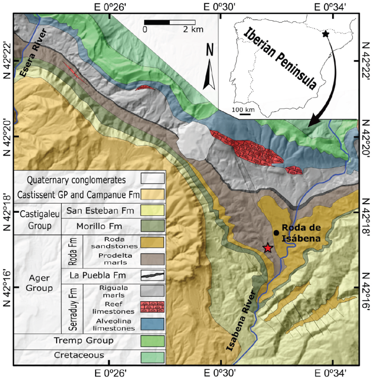 Locality Type. Roda de Isábena, Huesca, Spain. Stratigraphic position and age. Roda Formation, late Ypresian, early Eocene.