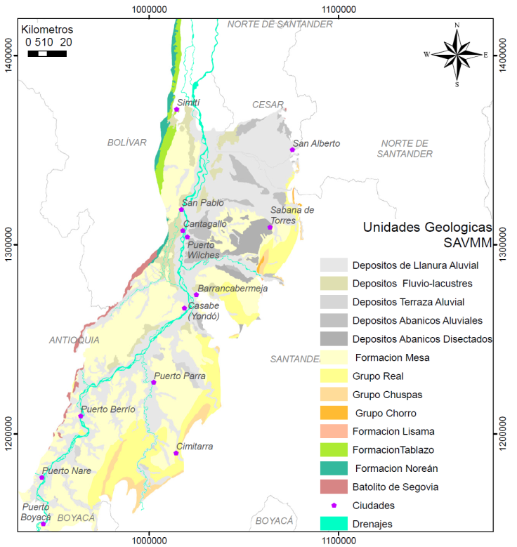 Cañas, H., Pérez, O., Ruíz, D., Herrera, W., Watson, A., 2019, Modelo hidrogeológico conceptual Valle Medio del Magdalena. Planchas 108 y 119. Puerto Wilches, Barrancabermeja, Sabana de Torres y San Vicente de Chucurí: Colombia, Servicio Geológico Colombiano.