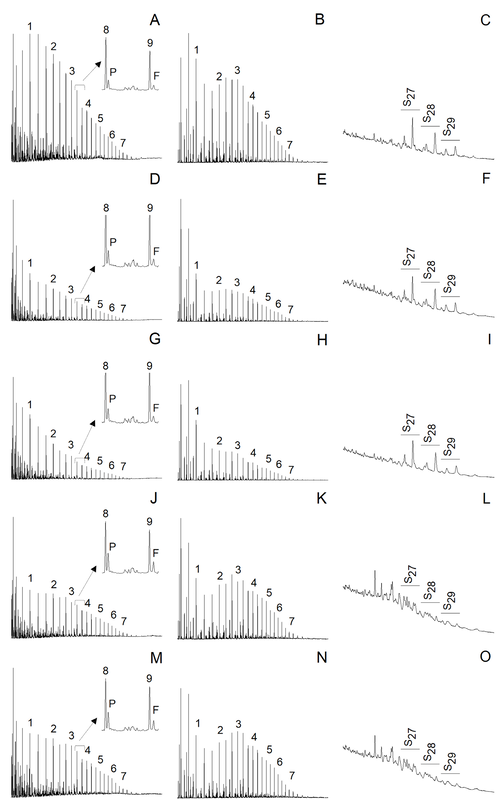 Stashenko, E., Martínez, J., Robles, M., 2014, Extracción selectiva y detección específica de biomarcadores saturados del petróleo: Scientia Chromatographica, 6 (4), 251-268. http://dx.doi.org/10.4322/sc.2015.010