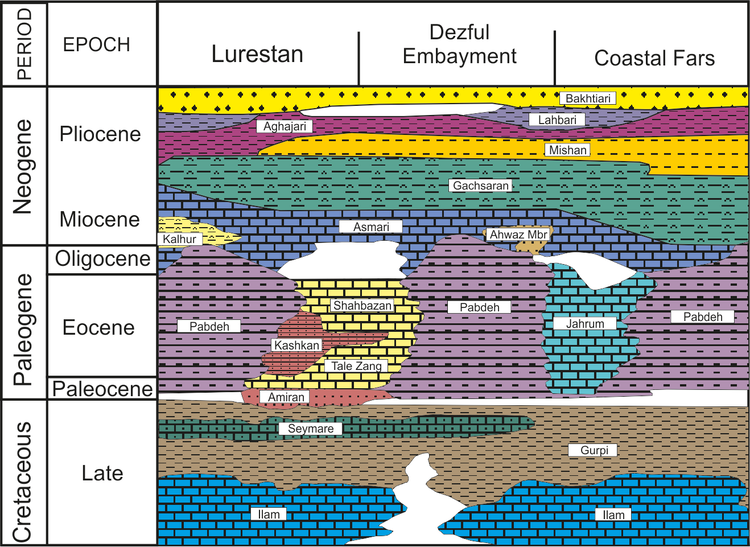 Bordenave, M. L., Hegre, J. A., 2010, Current distribution of oil and gas fields in the Zagros Fold Belt of Iran and contiguous offshore as the result of the petroleum systems: Geological Society, London, Special Publications, 330(1), 291-353. https://doi.org/10.1144/SP330.14