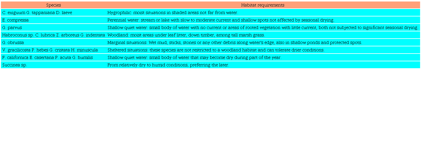 Ecology: Members of the Family Succineidae can be found in disturbed areas but prefers freshwater habitats with humid conditions among rocks, logs or leaf litter (Forsyth, 2005).